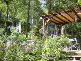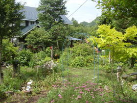 区画の80%くらい木を切ったオーナーがいますが、10区画や20区画でしたら問題ありませんが、450区画みんながそんなことをしたら、急斜面のB地区では土砂崩れ、下のA地区では庭が水浸し湿原になってしまうと思います。 私がオーナーになるとき契約書には ●自主建蔽率20%以下 ●塀を作るな ●鉄筋コンクリート作りはダメ ●1区画2棟はダメ ●区画の分割はダメ とありました。町の設定した「らしさ」を保つ最低限のルールだったと思います。 外からのシカの侵入を防ぐ防護ネット、ペンシオーネにもある中の犬を出さないように柵を作ったドッグラン、どちらもやはり壁です。本当は「そぐわない」と思っている方もいると思います。ゴメンナサイ! みなさん自分の区画をよくしようと木を切ったり、何かを建てたり作ったりしています。それは一見なんの問題もありません。でも同じように、良かれとして作った原発も事が起こると200㎞も先の人々にも迷惑をかけ日本に「そぐわない」ものになってしまいました。何気なくしていることが「らしさ」を失う「そぐわないもの」になっていないだろうか?そんな配慮も必要なのではないでしょうか。 オーナーのみなさんの「美し松らしさ」は微妙に違います。しかし都会にない自然ややすらぎなど気にいった要素は一緒だと思います。でもこの涼しさや動植物や治安は勝手に保てるのではありません。一人一人の気配りで保てるのです。 木の根が絡み合うほど間伐をしない、涼しさを失うほどの木の切り過ぎ、リスや鳥や昆虫が悲しむ樹齢60年を超える広葉樹の伐採、何となく自然にマッチしない建造物、なにかするときの基準にこんなことをしたら「らしさ」に「そぐわない」かなというのも入れていただけたらと思っています。私も行動基準の一つとして心がけます。 こんなフェンスはいかがですか?